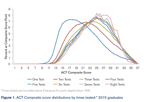 Take a look at this graph provided by ACT that shows just how dramatic score improvement can be with dedication and perseverance: